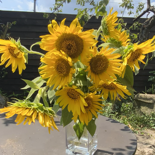 向日葵を飾りました。気持ち良い風が風鈴を鳴らしています。